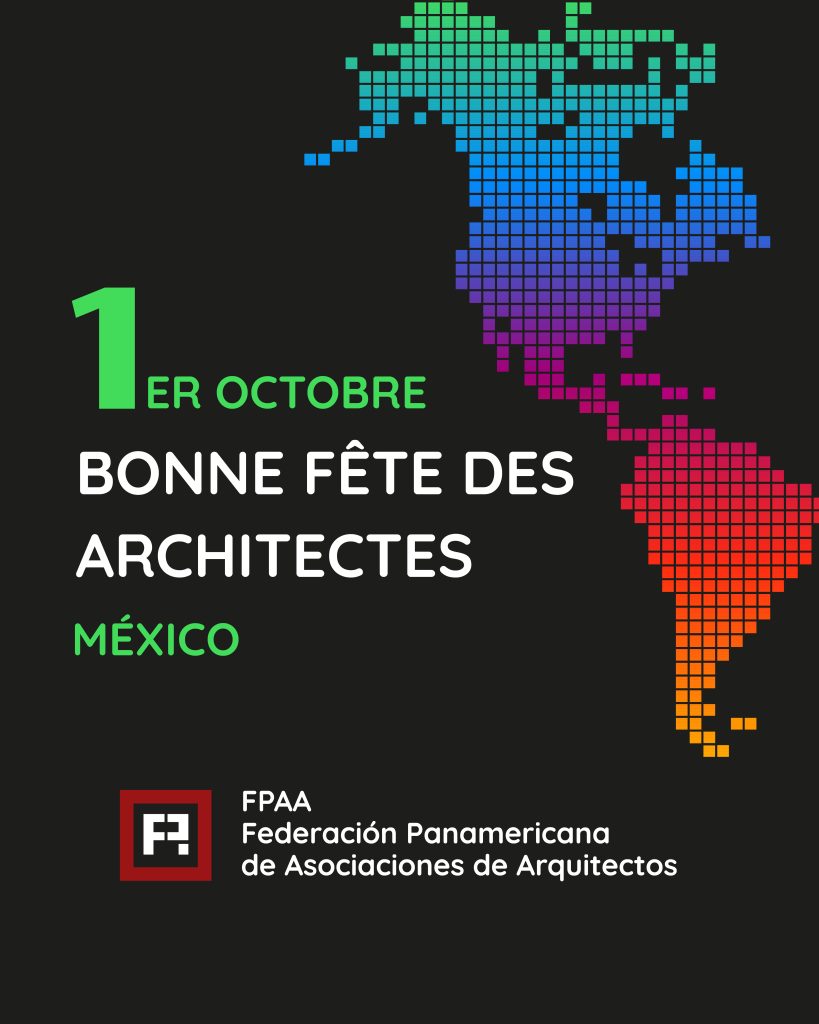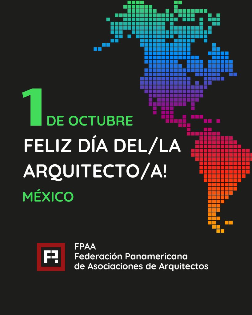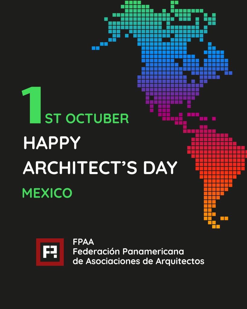 La Federación Panamericana de Asociaciones de Arquitectos (FPAA) saluda a todas y todos los arquitectos de México en su día, celebrado el 1 de octubre.