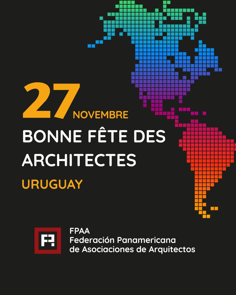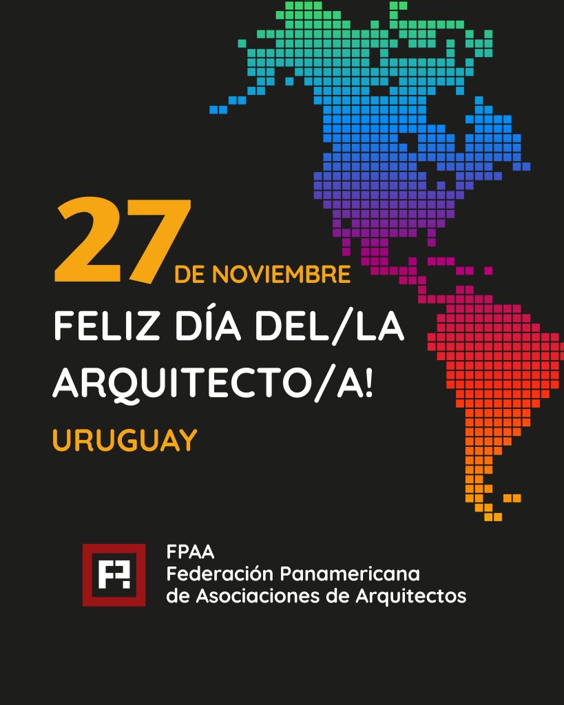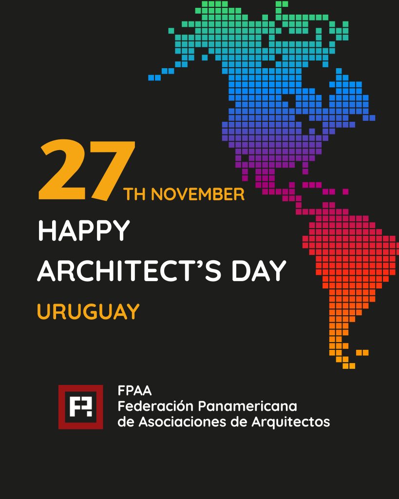 La Federación Panamericana de Asociaciones de Arquitectos (FPAA) saluda afectuosamente a todos los arquitectos y arquitectas de Uruguay en su día. Cada 27 de noviembre, el país celebra esta fecha en conmemoración de la creación de la primera Facultad de Arquitectura del Uruguay en 1915, un hito que marcó el inicio de una tradición académica y profesional sólida, innovadora y comprometida con la calidad del entorno construido.