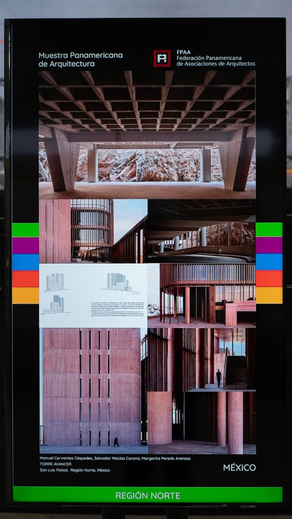 Organizada por regiones —Norte, Sur, Centro, Caribe y Andina—, la muestra presenta 10 obras de cada país participante, destacando proyectos construidos que reflejan la diversidad, vitalidad y riqueza cultural de la arquitectura panamericana.