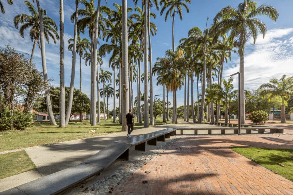 - Reconectar los sistemas naturales y urbanos. Se reconocen valores ambientales preexistentes en el parque: Una antigua acequia en estado de desecación por malos manejos de las urbanizaciones vecinas y el conjunto arbóreo del parque con más de 80 palmas reales centenarias, así mismo, se busca la conexión con el casco urbano del municipio, a partir de reconocer la trama urbana, incorporando cruces transversales al parque con pasos seguros sobre las vías.